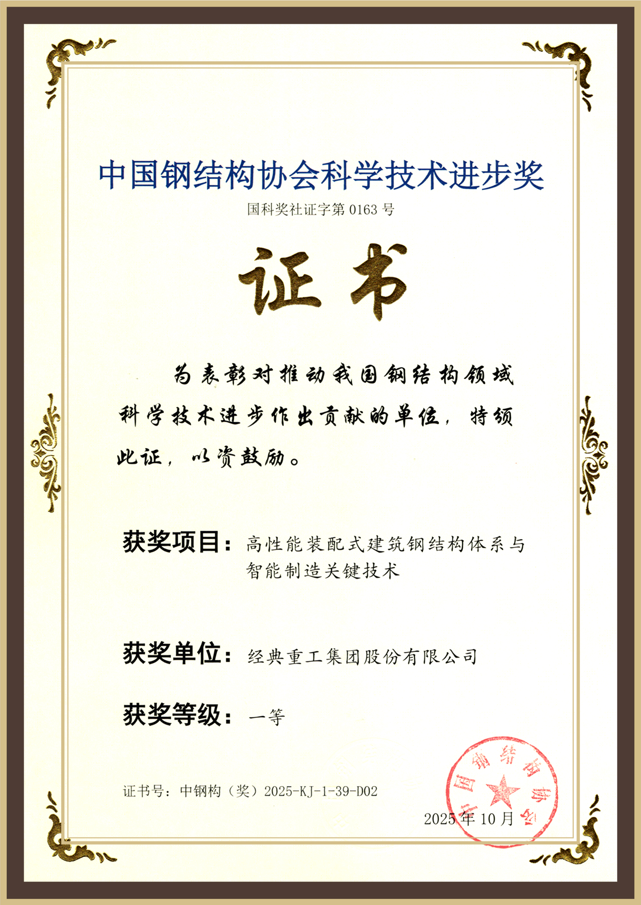 經(jīng)典集團(tuán)在中國(guó)鋼結(jié)構(gòu)協(xié)會(huì)成立四十周年紀(jì)念大會(huì)上榮膺“卓越貢獻(xiàn)獎(jiǎng)”,彰顯卓越貢獻(xiàn)與影響力。