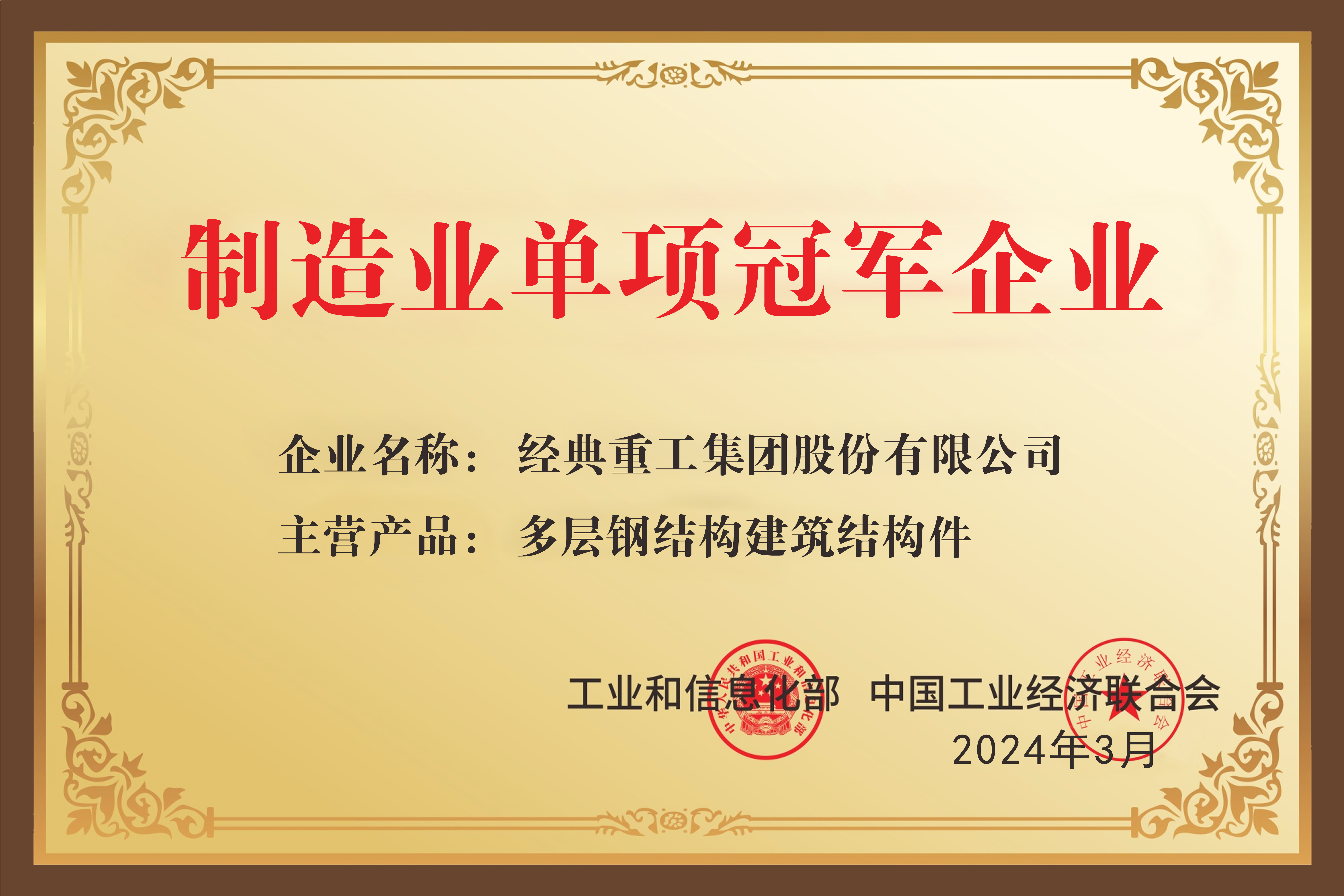經(jīng)典集團(tuán)榮獲“國(guó)家級(jí)制造業(yè)單項(xiàng)冠軍示范企業(yè)”稱(chēng)號(hào)。
